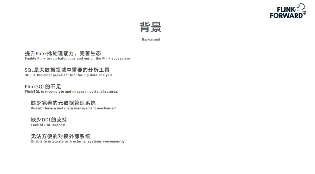 随着 Flink 在流式计算的应用场景逐渐成熟和流行。如果 Flink 能同时把批量计算的应用场景处理好,就能减少用户在使用 Flink 的开发和维护成本,并且能够丰富 Flink 的生态。因为 SQL 是批计算比较常用的工具,所以 Flink 针对于批计算主要以 SQL 为主要接口。本次分享主要针对 Flink 对批处理的设计与 Hive 的集成。