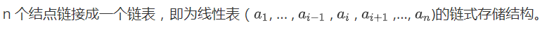 比起顺序存储结构每个元素只需要存储一个位置就可以了。现在链式存储结构中,除了要存储数据信息外,还要存储它的后继元素的存储地址(指针)。