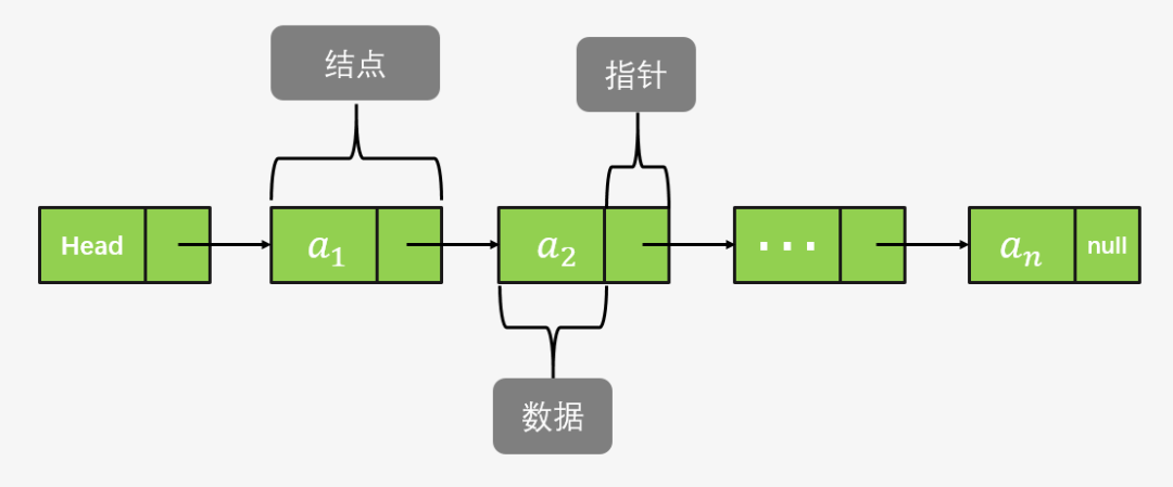 因为此类链表的每个结点中只包含一个指针域,所以叫做单链表。
