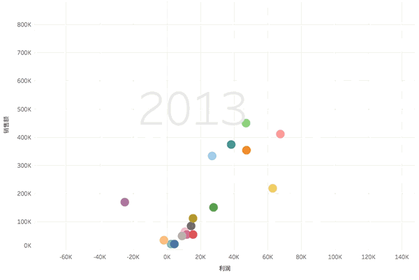 当我们要分析很多数据点之间的相关性时,使用动态图功能来观察一系列视图的连续变化会比盯着一整幅视图去分析更有效,也更易看清数据点之间的关联。