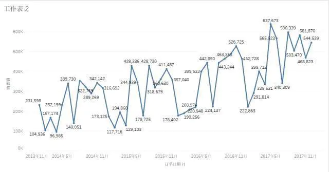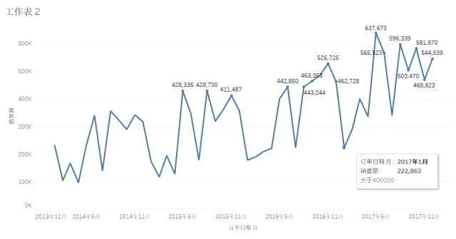 如果变成这样,只显示大于400,000销售额的月份。图表立刻变得一目了然,对吧?