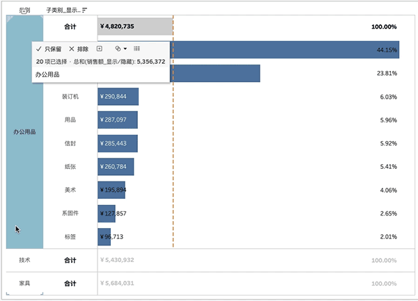 tableau实战系列(三十二)- 如何通过集操作查看数据详情及占比情况