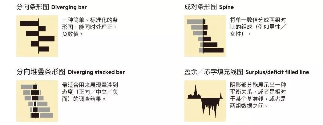 不同类别下方,将列举出不同种类的图表及应用场景,方便你找出最适合表达的图表。