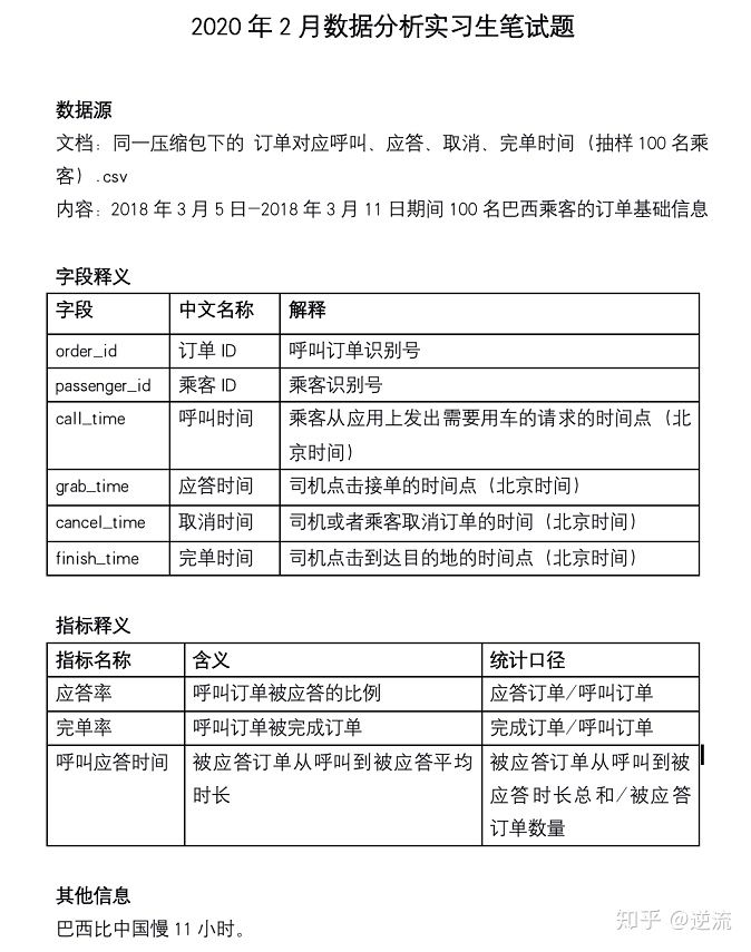 滴滴出行2020数据分析面试题