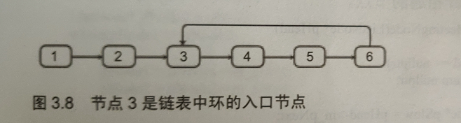 一个链表中包含环,如何找出环的入口结点?例如,在图3.8的链表中,环的入口结点是结点3。