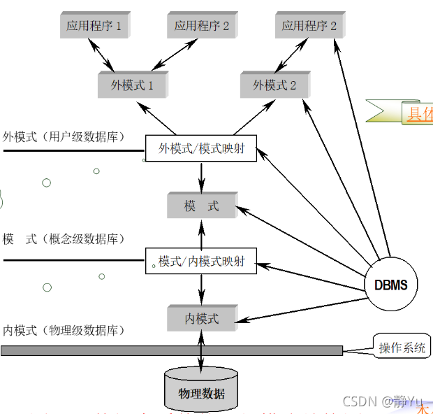 - 模式/内模式的映像:实现概念模式到内模式之间的相互转换。
