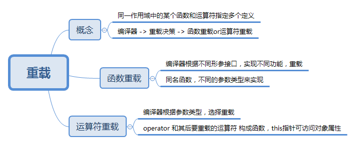 理解:相同函数名的函数或者同一运算符,在不同场合有不同的功能。编译器通过不同的接口,判断执行哪一种功能(重载决策)。1.实现接口;2.根据接口实现对应功能。