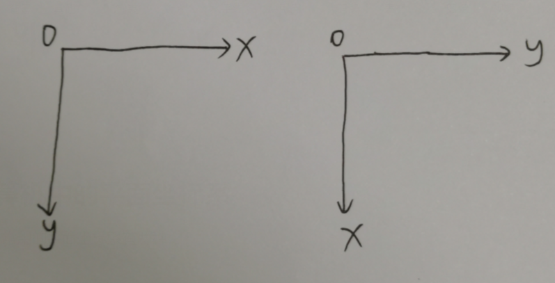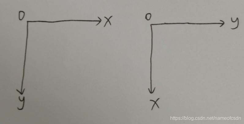 计算机中,常用的平面坐标系有两种: