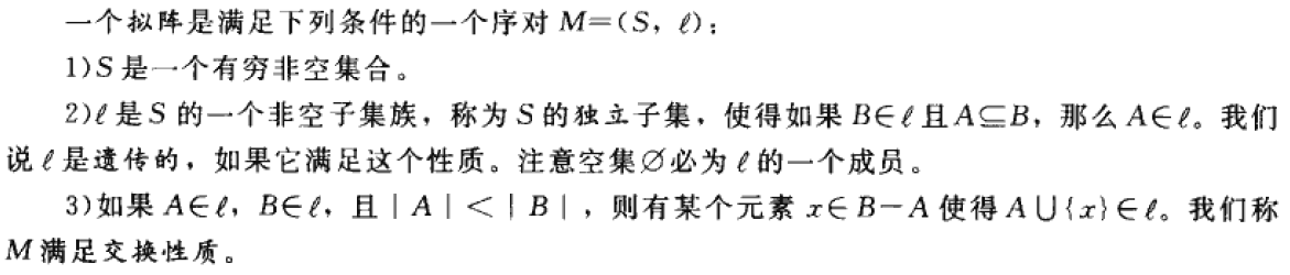 很多贪心问题都可以转化成一个拟阵模型,即求最优子集。