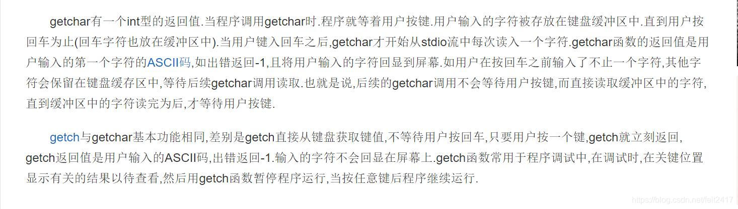 意思是,我通过按键输入的字符数据不会立即被getchar这个函数处理,先存储到一个缓冲区中。当我按下回车符'\n'后,函数getcahr再从缓冲区中一个一个读取字符,这就是行缓冲机制。总的来说这个过程是在我回车之后进行的。
