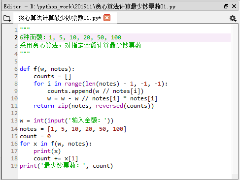 能用100的就用100,否则尽量用50,……以此类推,这就是贪心算法。