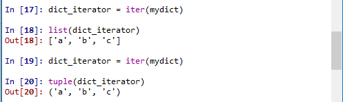 当我们书写for key in mydict语句时,Python解释器试图基于mydict创建一个迭代器: