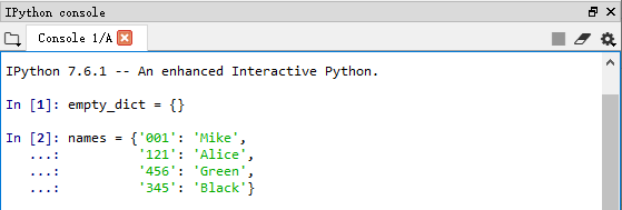 字典(dict)可能是最重要的Python内置数据结构,更常用的名称是哈希映射(hash map)或关联数组(associate array)。它是键值对的集合,键和值都是Python对象。定界符是花括号{},键与值用分号隔开。