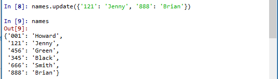 其实,插入新元素和更新老元素,可以利用update()方法来完成。