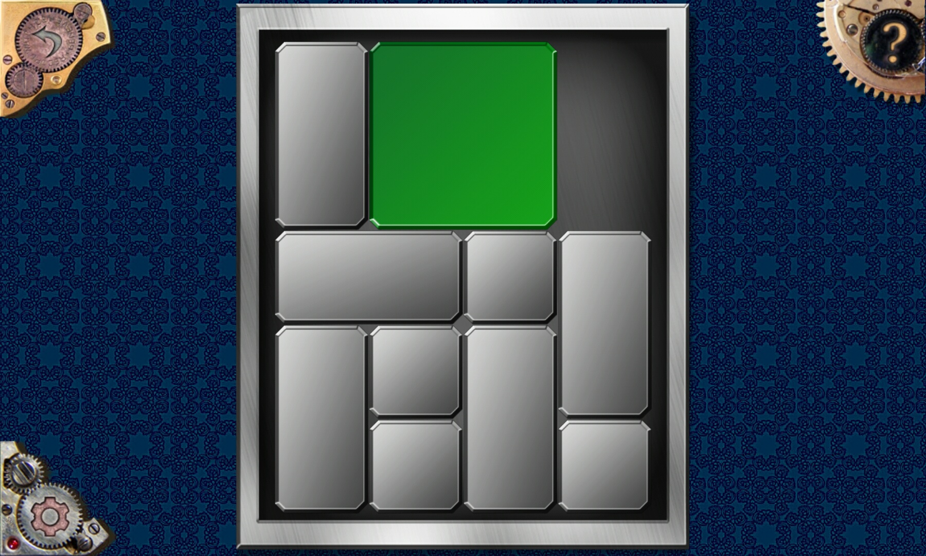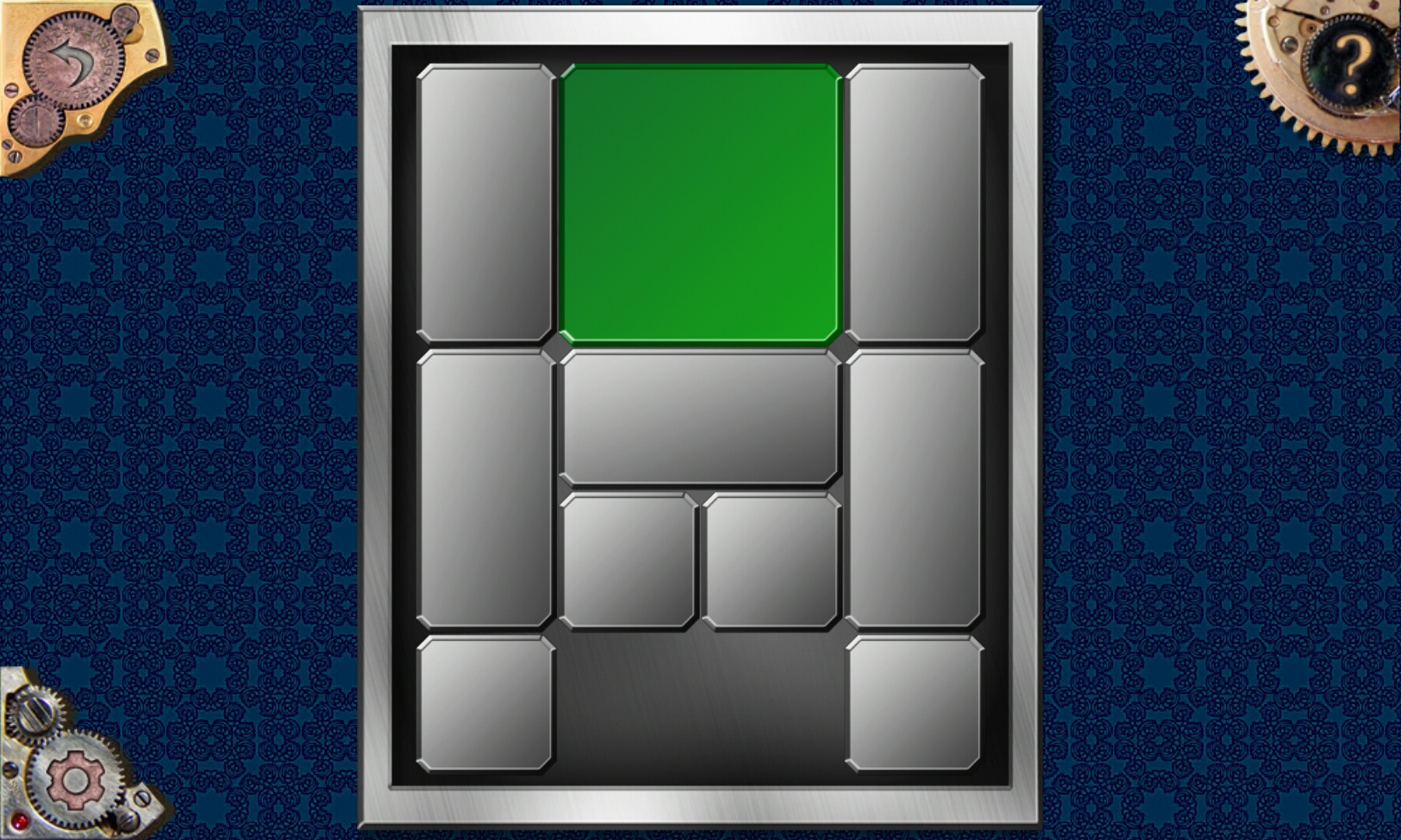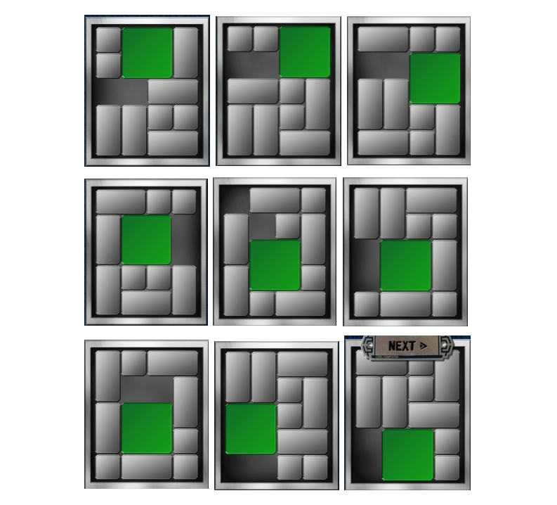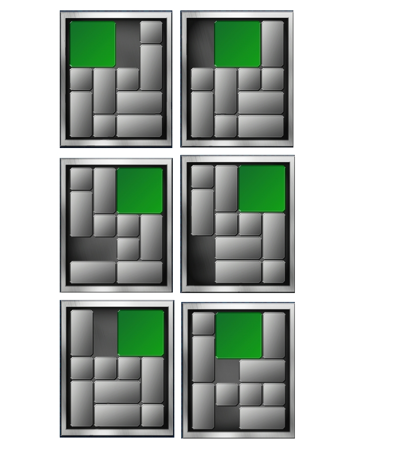 这个就完全是标准的华容道了,要把方块移动到最下面的中间。
