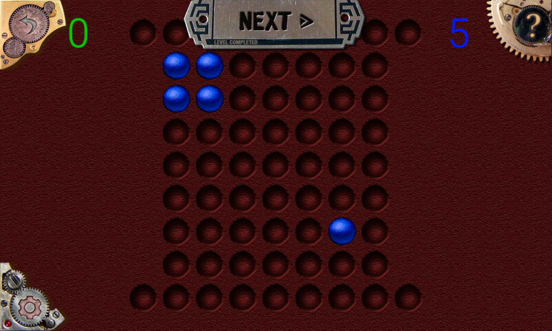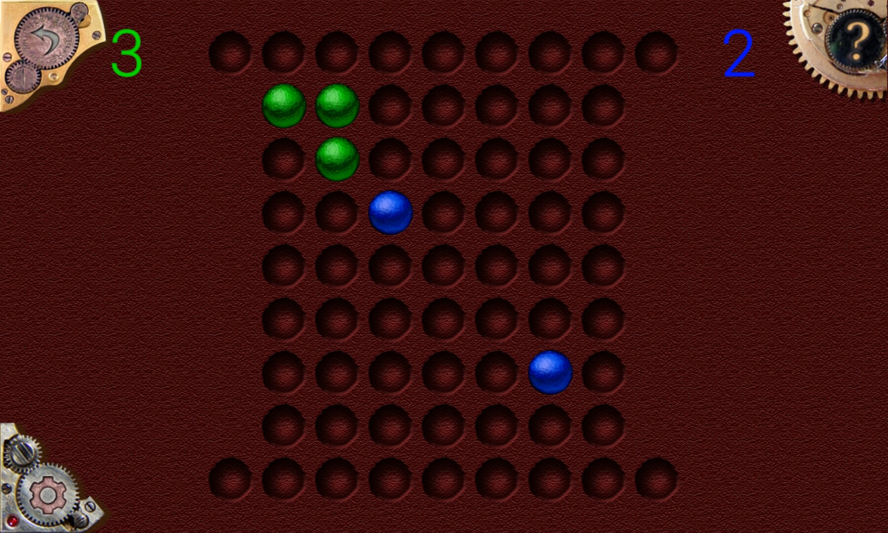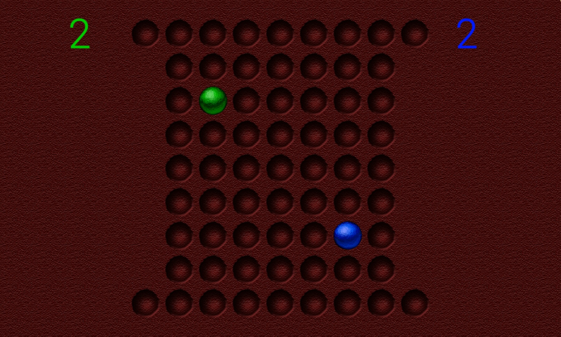 巧妙的利用这些格子,就能得到一些有趣的获胜场面,即AI的绿球被我的篮球全部堵住了,那些空格只有我能下。