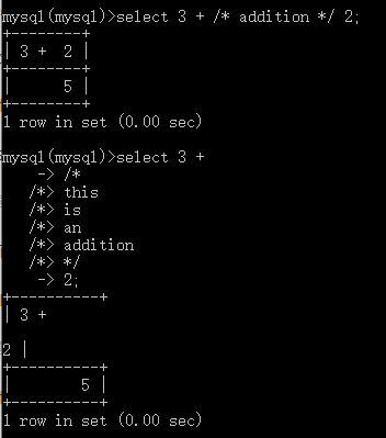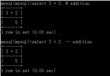 (1)单行注释:#和--