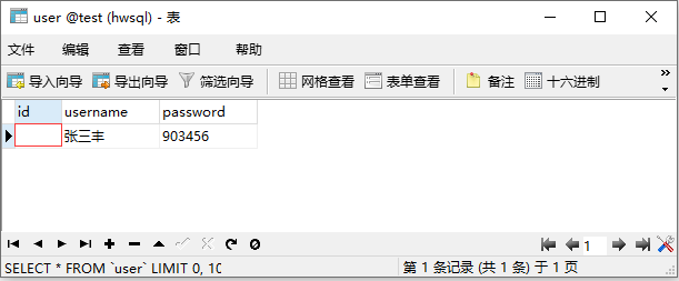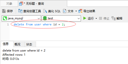 查看user表,发现id为2的记录已被删除:
