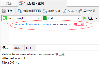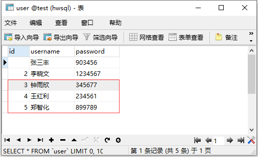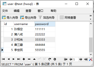 查看user表,发现username为唐三藏的记录已被删除:
