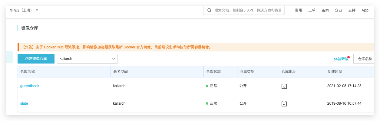 $ sudo docker push registry.cn-shanghai.aliyuncs.com/kaliarch/slate:[镜像版本号]