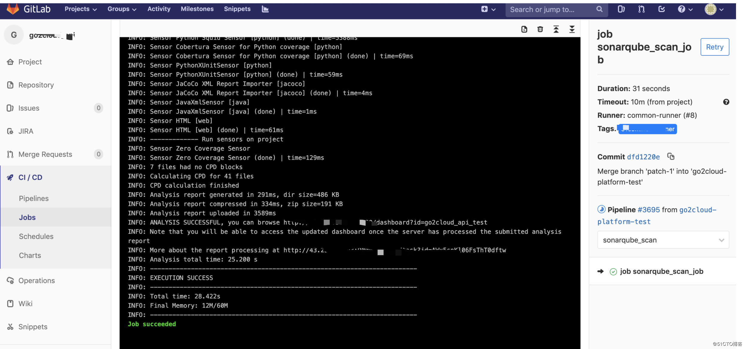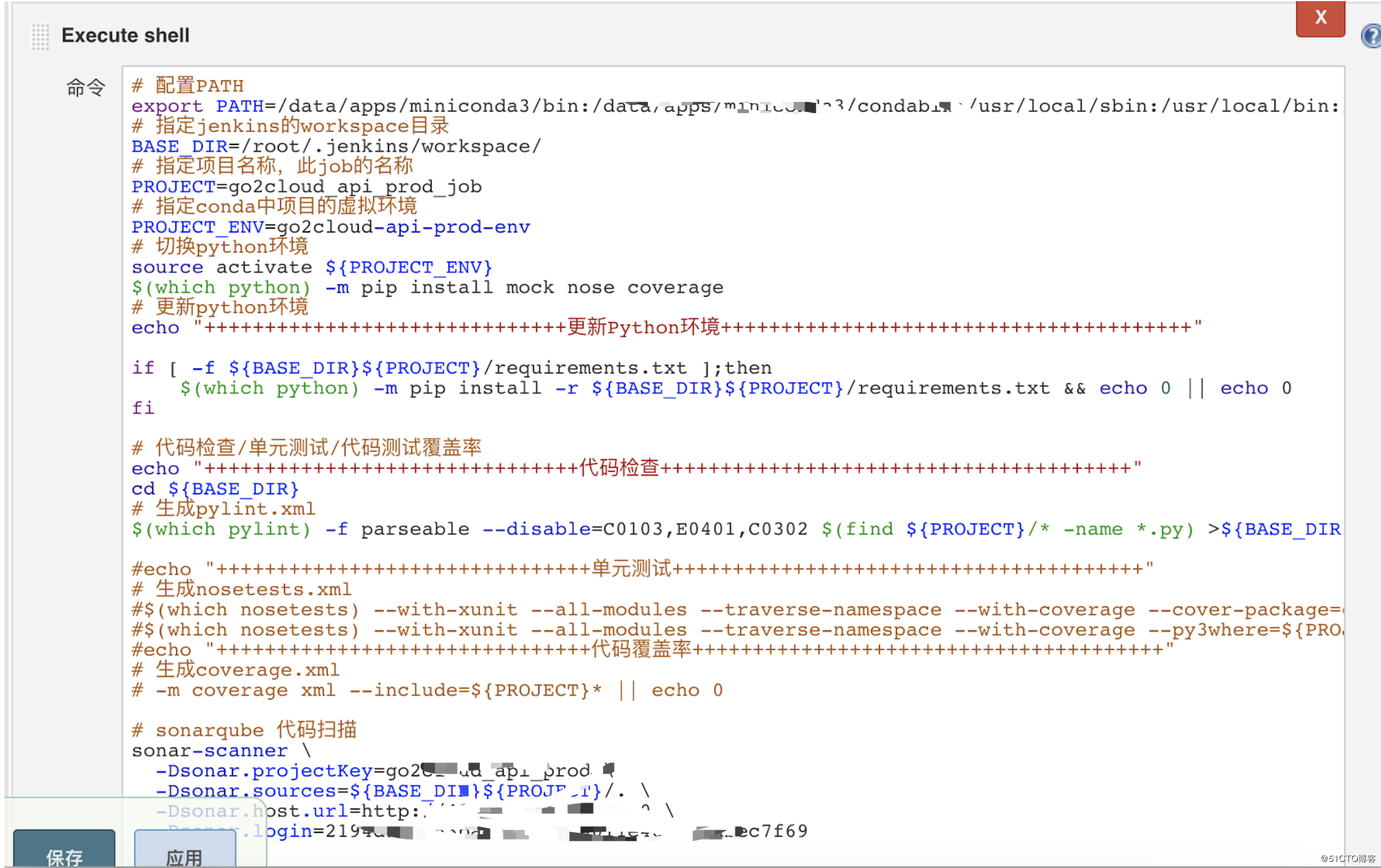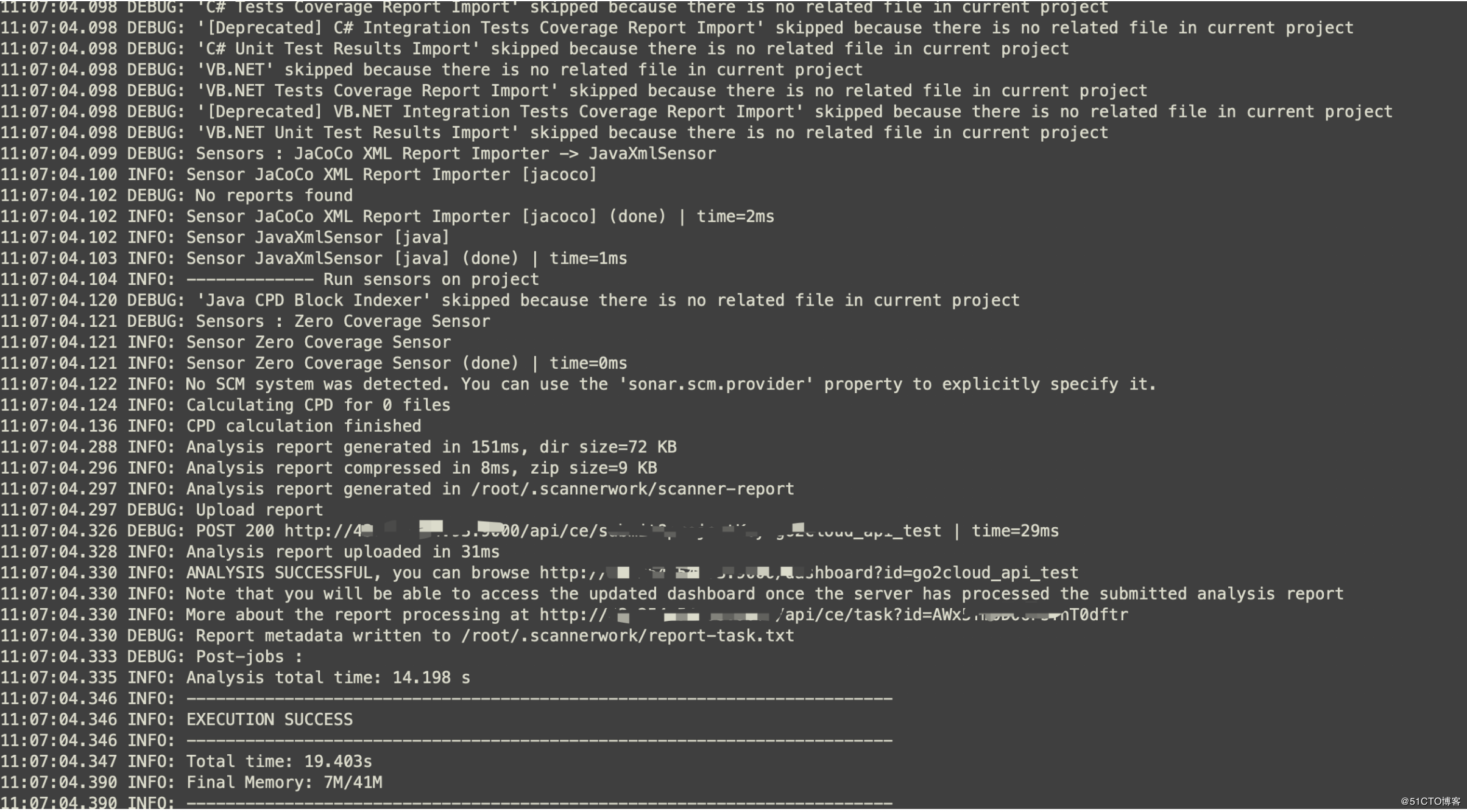 - sonar-scanner -Dsonar.projectKey=go2cloud_api_test -Dsonar.sources=/. -Dsonar.host.url=http://43.xxx.xxx.xxx:9110 -Dsonar.login=a393276xxxxxxxxxxxxxxxxxxx03004a714