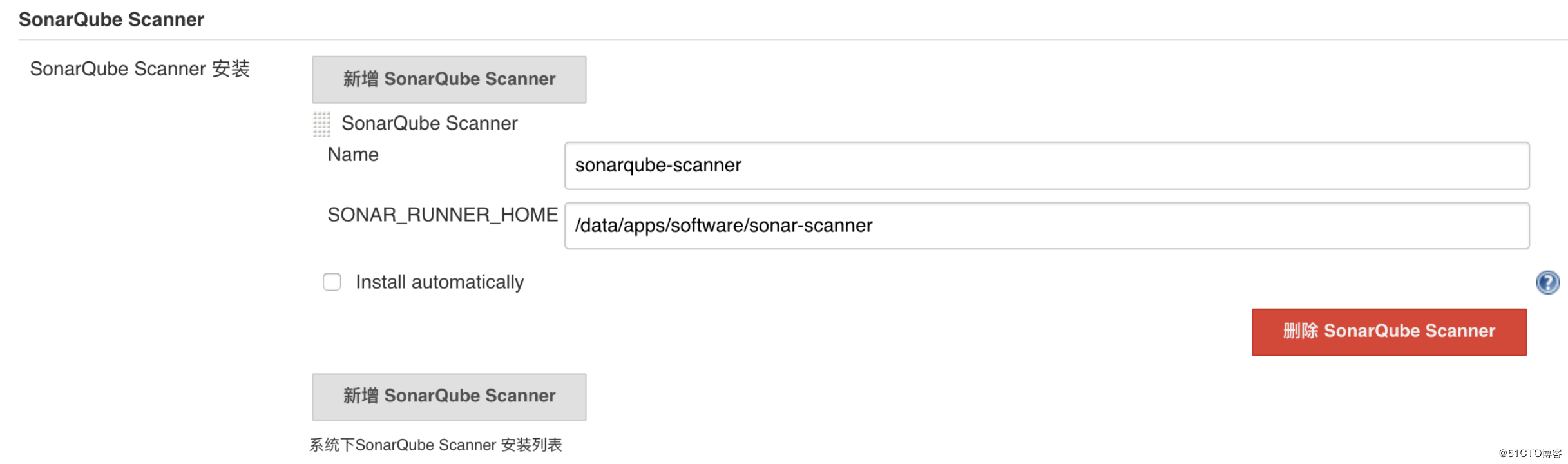 可以利用插件集成,也可以将sonar-scanner 安装在jenkins服务区上面,每次进行工具扫描。