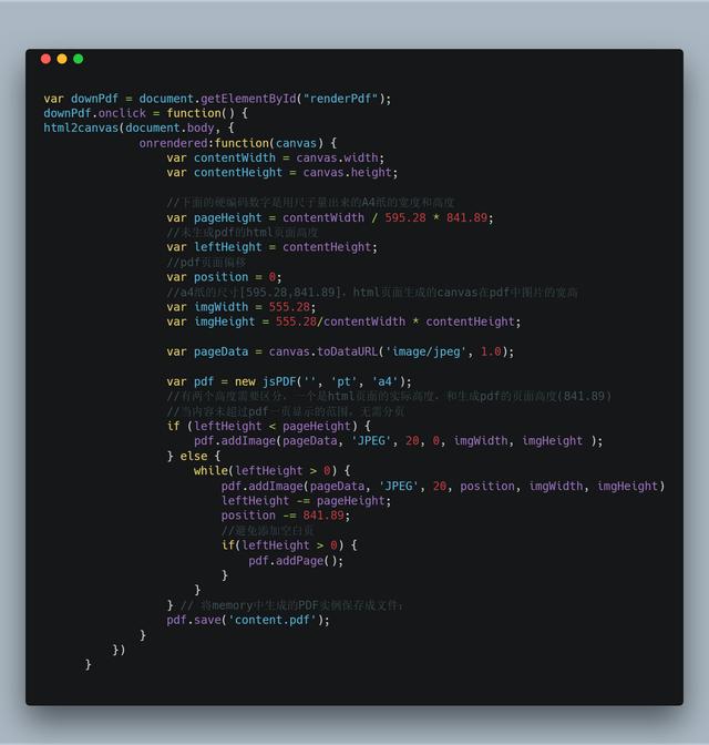 2. 利用一个开源的JavaScript库,jsPDF,在浏览器端用JavaScript生成PDF文件。PDF的生成逻辑封装在脚本文件jsPdf.debug.js里。