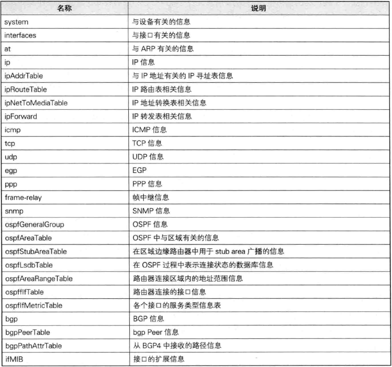 在SNMP中这类信息通过MIB(管理信息库)这个数据库来进行管理。MIB数据库采用树形结构,其中的信息来自于设备制造厂商提供的相关文本文件。