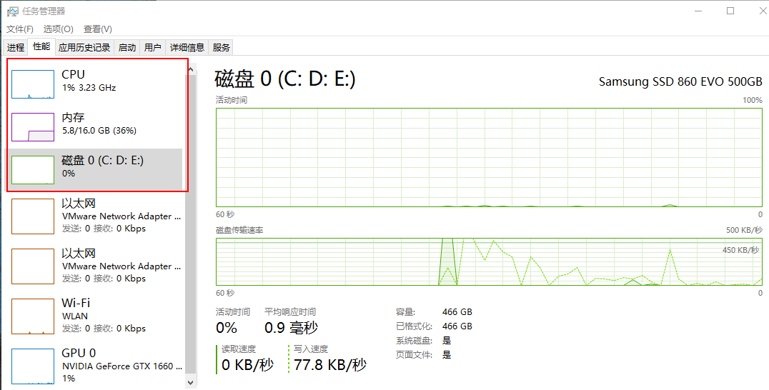 通过宿主机运行VMware安装CentOS对宿主机有一定的要求,建议多核CPU、8G内存、500G硬盘以上。可以在任务管理器中查看CPU、内存和磁盘配置和使用情况。