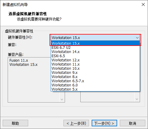 这一步选择虚拟机硬件兼容性,我们根据自己的VMware版本来选择,避免高低版本虚拟机复制的时候不兼容问题,单击下一步