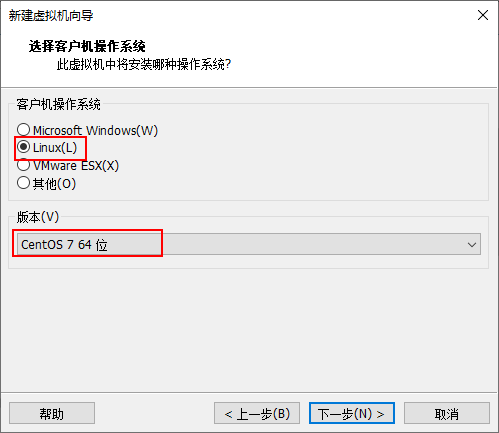 我们这里是CentOS7 64位的操作系统,选择正确的客户机操作系统配置后,单击下一步