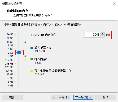 这一步是为安装的虚拟机分配内存大小,这个根据宿主机的配置以及当前安装虚拟机学习的目的去自定义就好,选择好了之后单击下一步