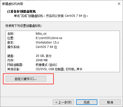 虚拟机中很多硬件我们使用不上,我们通过自定义硬件的方式将其移除。