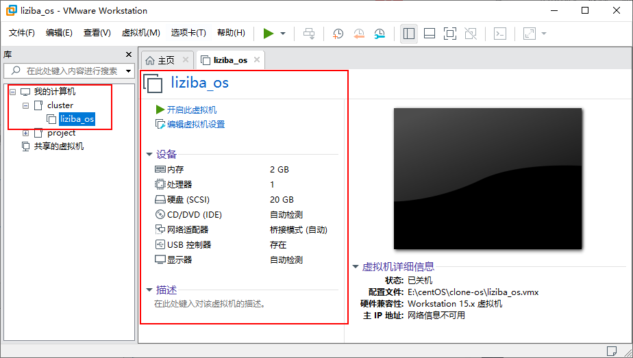 创建完成后在我的计算机中可以看到刚刚创建的虚拟机和虚拟机的配置,为了方便管理建议右键单击我的计算机,新建文件夹对虚拟机进行分组管理。
