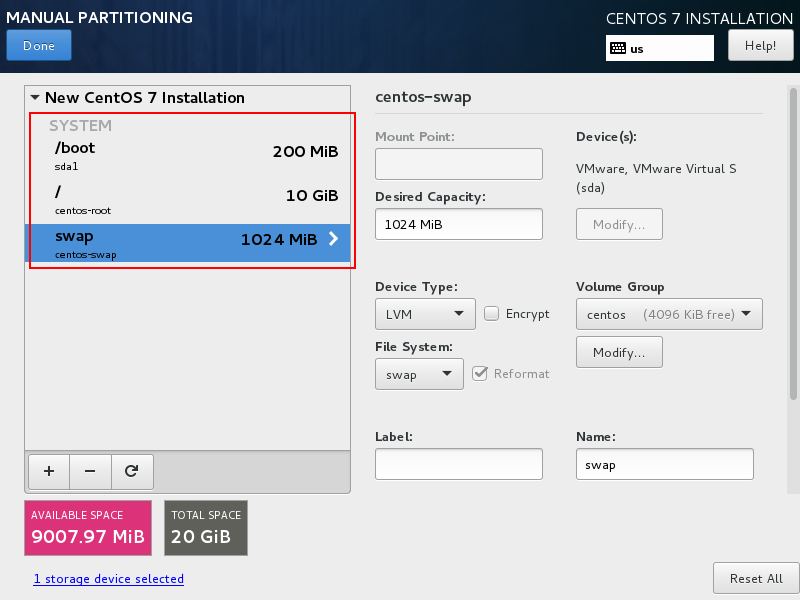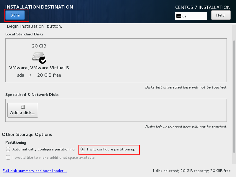 选择I will configure partionning. 默认是Auto选择,修改成I will configure partionning后单击Done