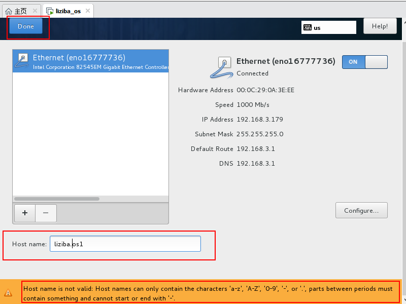 修改host name(建议hostname有一定的规范和规则,命名要求会有提示),单击Done
