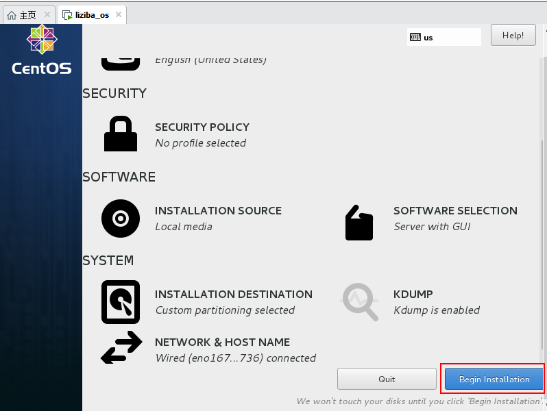 单击Begin Installation,开始安装 -> 安装需要一些时间,我们可以稍微干点其他的事情……