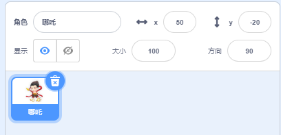 删除默认的小猫角色,并从素材中添加哪吒角色列表中,如下图所示: