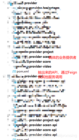 provider是具体的业务提供者,provider-api是对应服务抽出来的Api,供其他服务调用。假如provider-socre中需要调用中provider-vidoe的接口,须在provider-vidoe-api中暴露相应的接口,provider-socre中引入provider-vidoe-api的依赖,直接调用。
