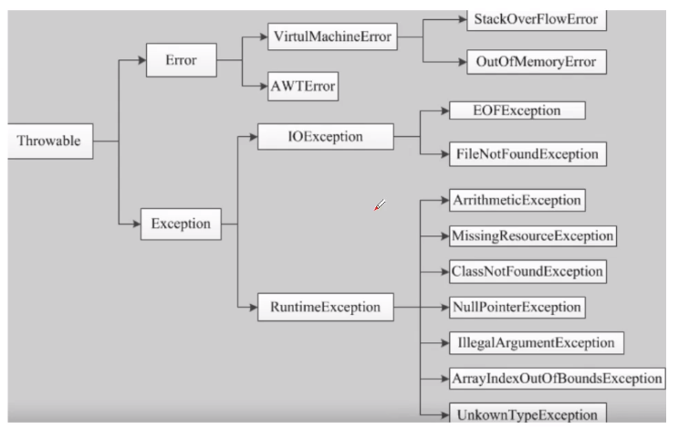 Java有着非常强大的异常处理机制,异常的祖先是Throwable,有如下两个子类:
