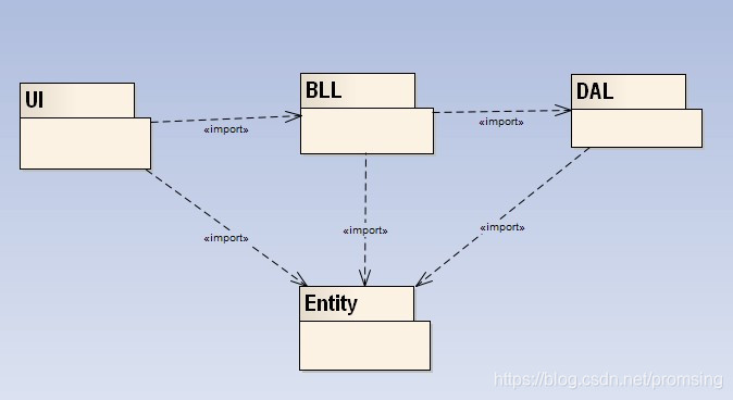 三层架构就是为了符合“高内聚,低耦合”思想,把各个功能模块划分为表示层(UI)、业务逻辑层(BLL)和数据访问层(DAL)三层架构,各层之间采用接口相互访问,并通过对象模型的实体类(Entity)作为数据传递的载体,不同的对象模型的实体类一般对应于数据库的不同表,实体类的属性与数据库表的字段名一致。