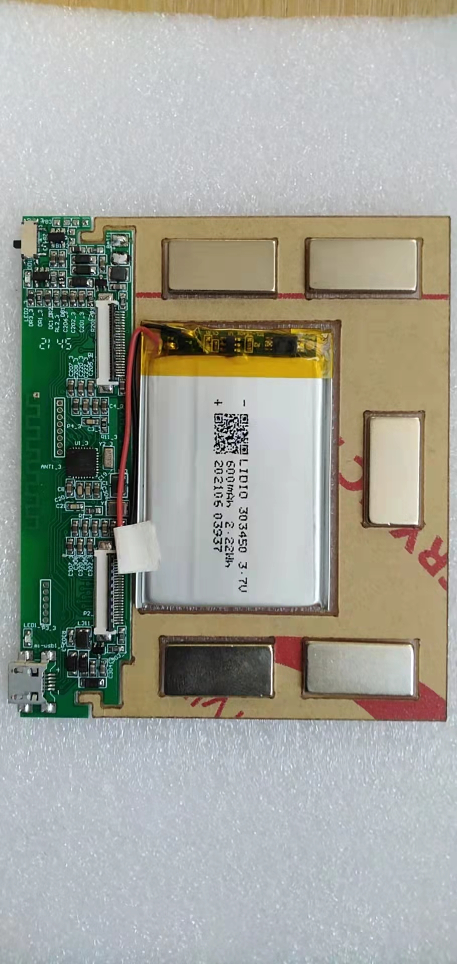 在34*50MM面积内,容量达到600Mah,自带充电保护电路,为桌牌提供了充足稳定的能量供应。电池组件控制在10元内