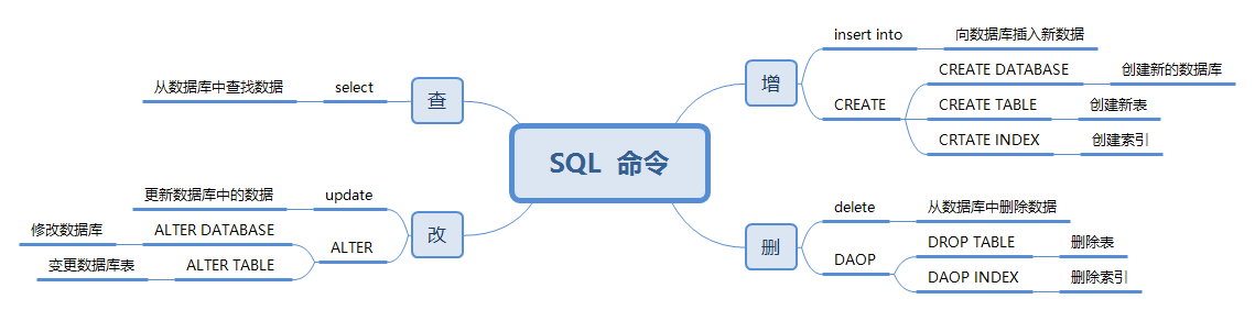 总结 :图片中小写字母都是对数据(记录)进行操作,而大写字母是对数据库中的结构(列 、表、库)进行操作。