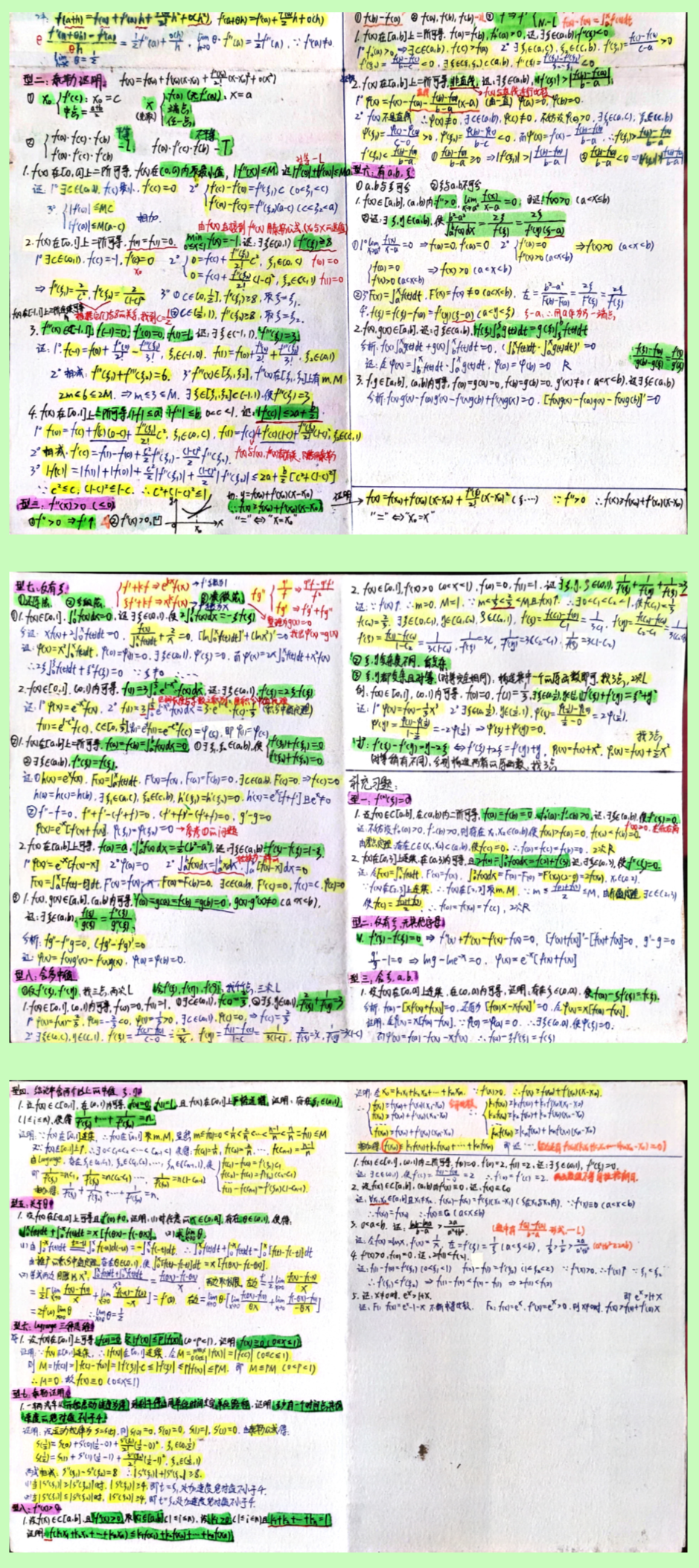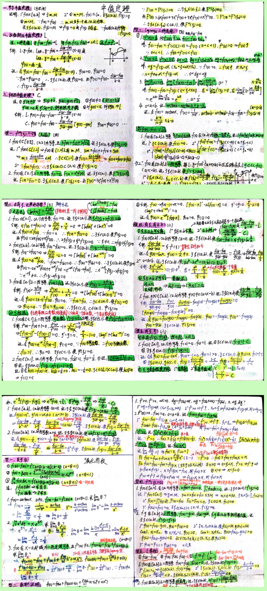 中值定理各种题型和技巧笔记并标记重点