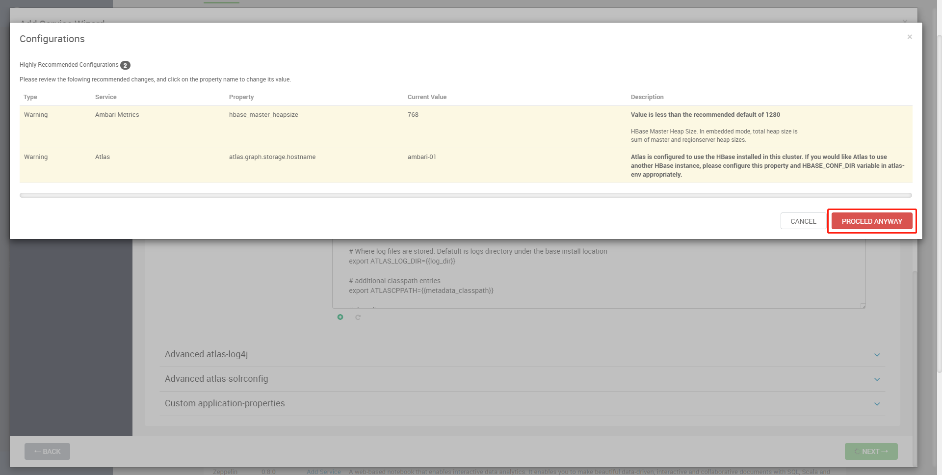 这里是HBase主堆大小没达到最小设置值,可以不用改,Proceed Anyway仍要继续