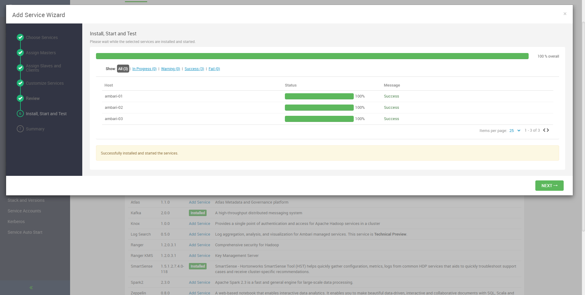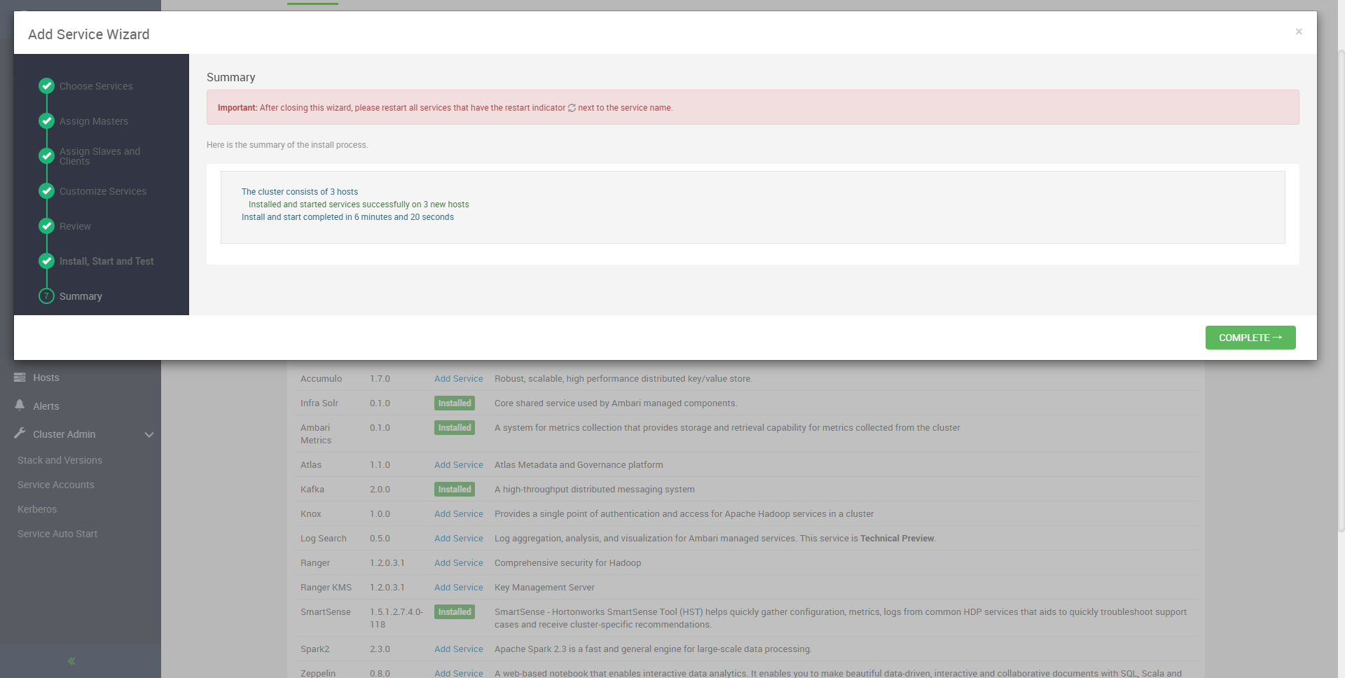 Important: After closing this wizard, please restart all services that have the restart indicator next to the service name.