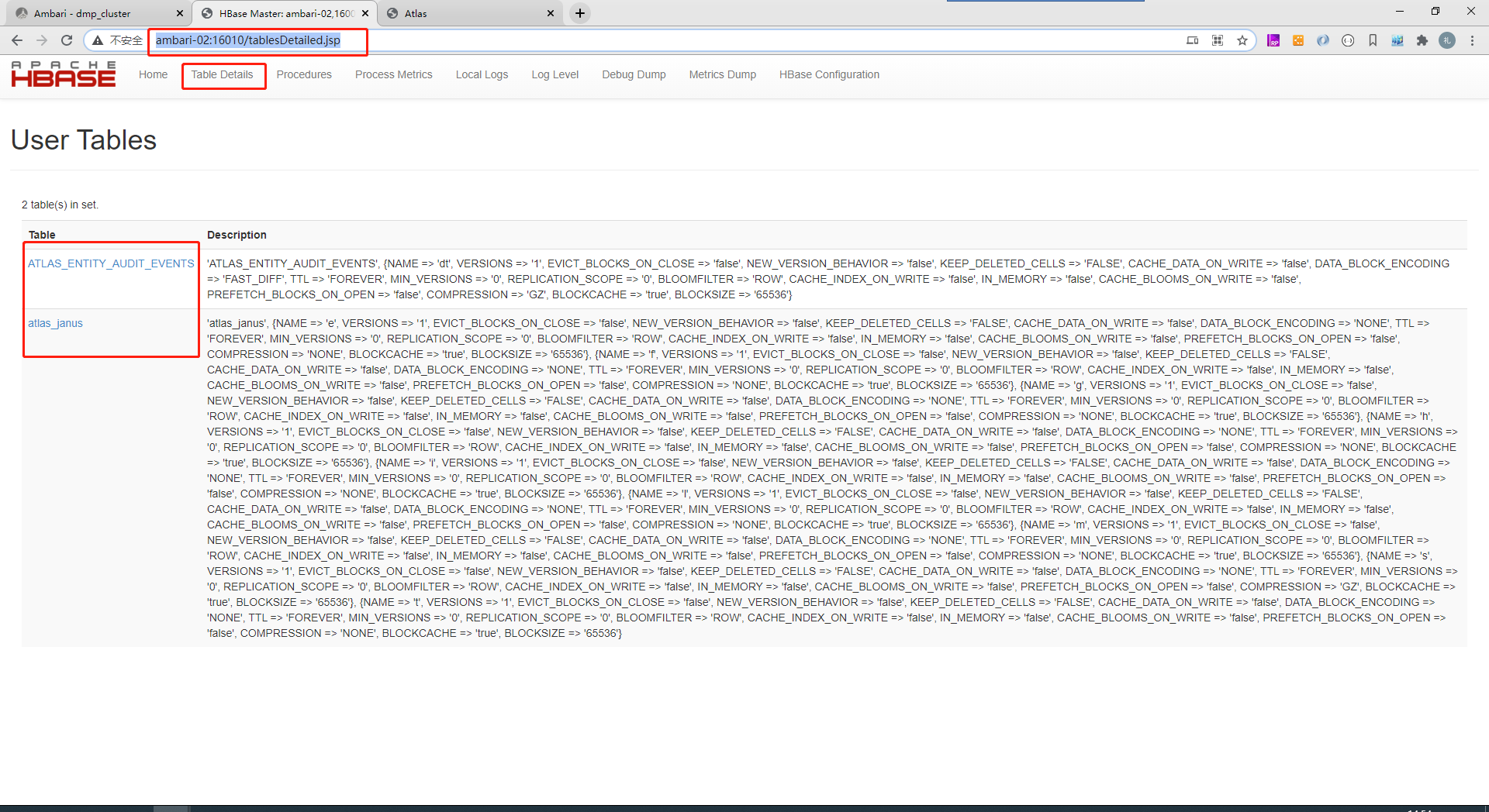 进入HBase UI应该看到Atlas创建了两个表: 找到Active