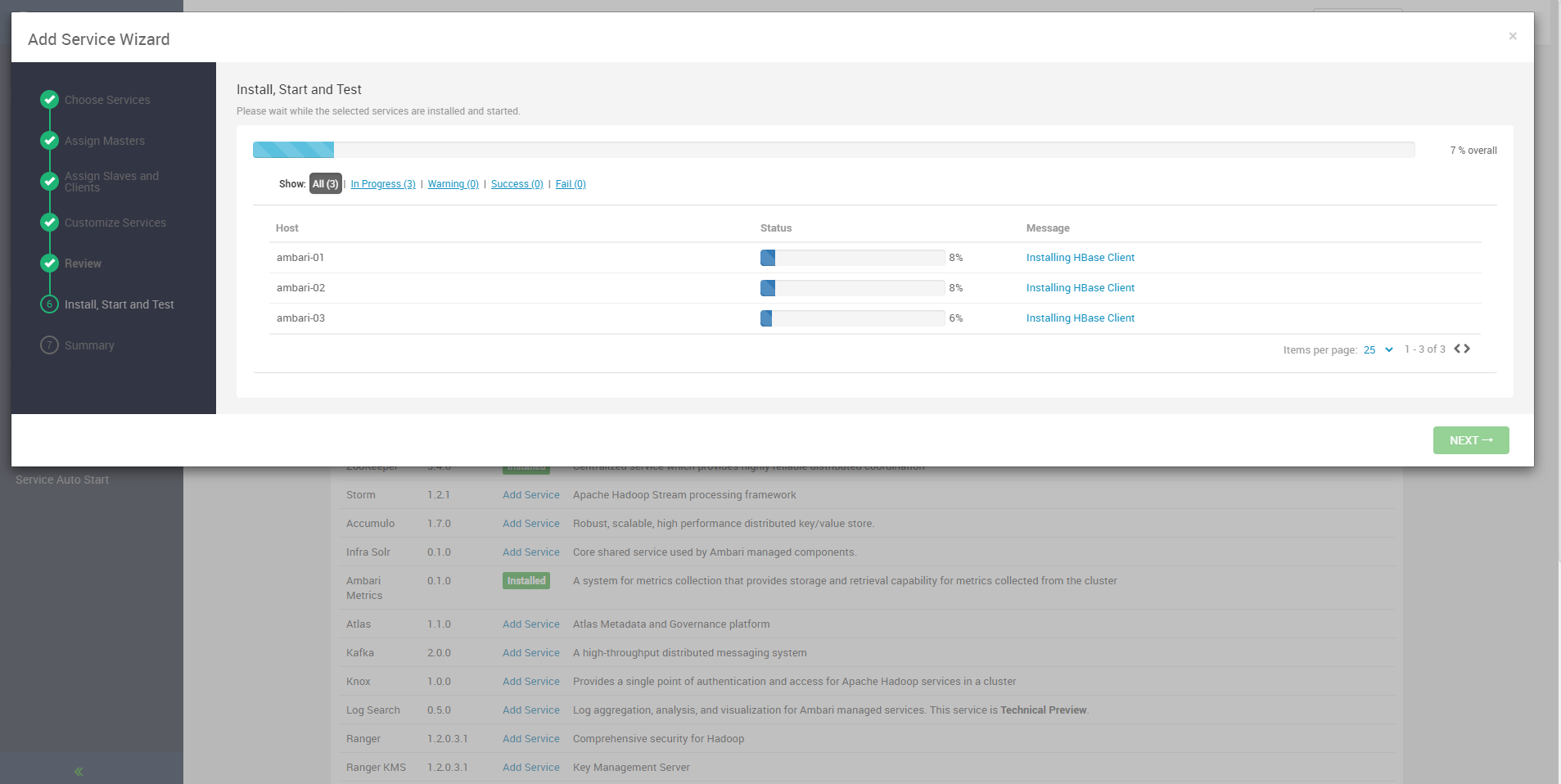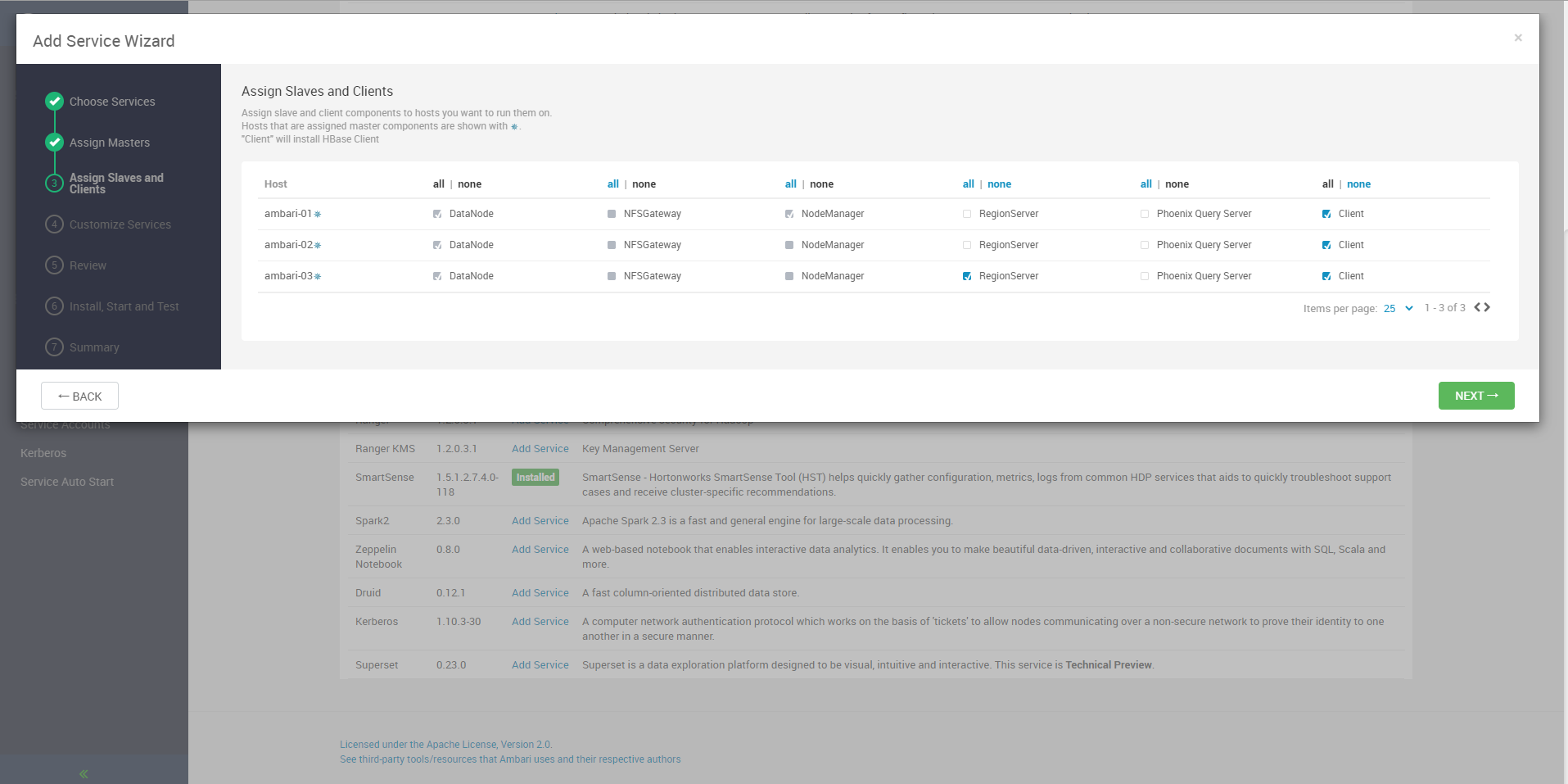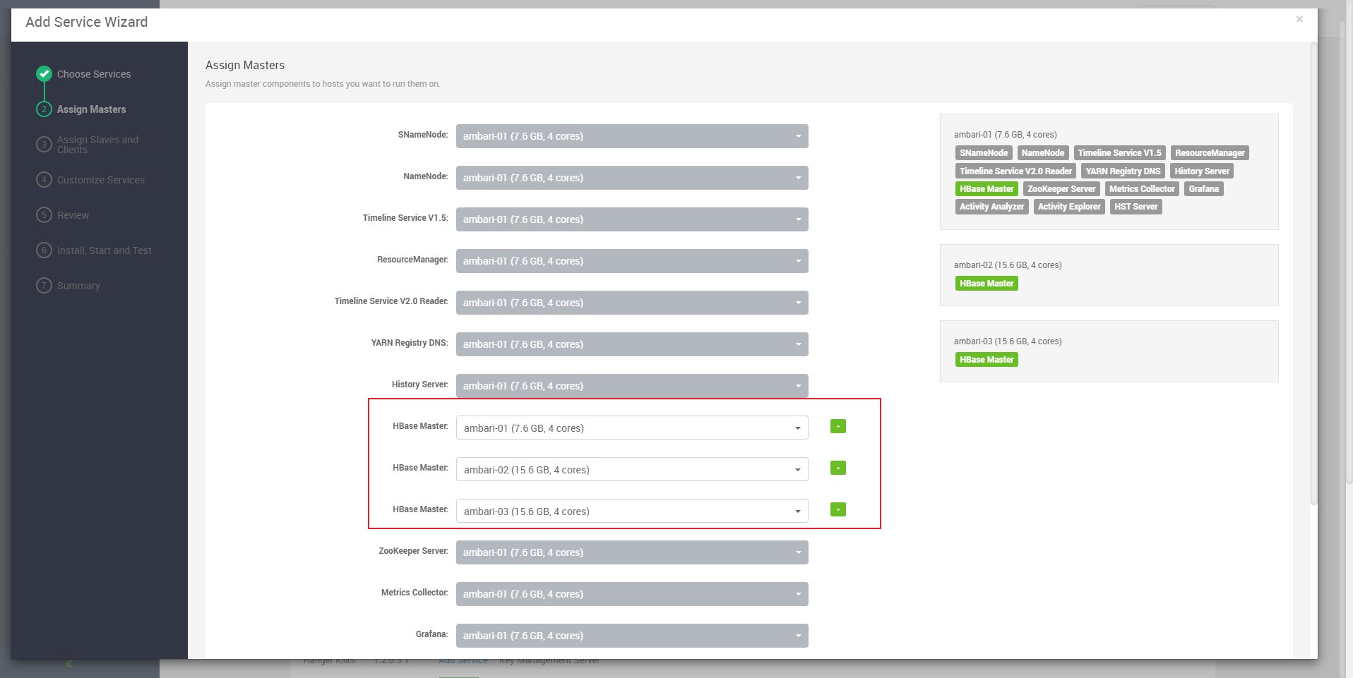 【摘要】 ambari 安装 HBase HA选择HBase 点击Next部署HA HBase 选择多节点 点击Next选择默认配置Review 没有问题的话点击 DEPLOYSummary 注意提示 Important: After closing this wizard, please restart all services that have the restart indicator ...