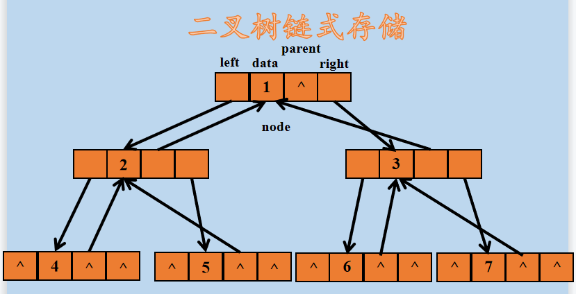 在上图中,每个结点都多了一个指向父结点的指针,根结点(图中值为 1 的结点)指向父结点的指针为空,因为根结点没有父节点。