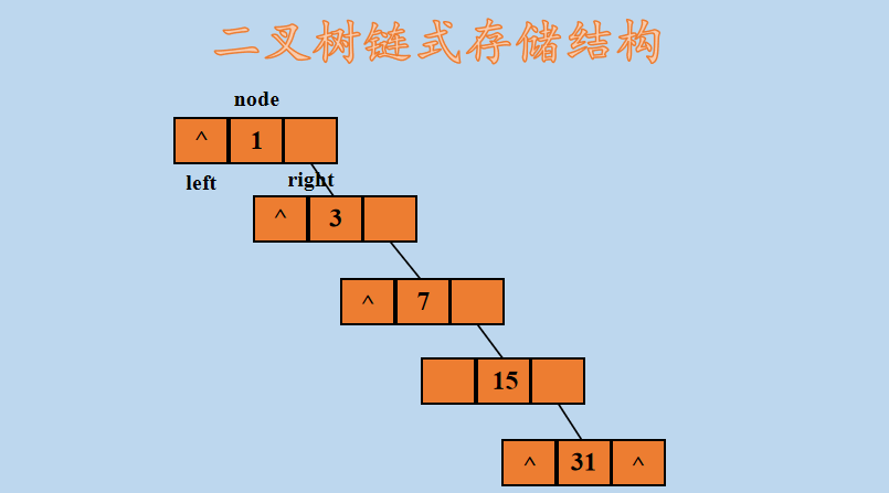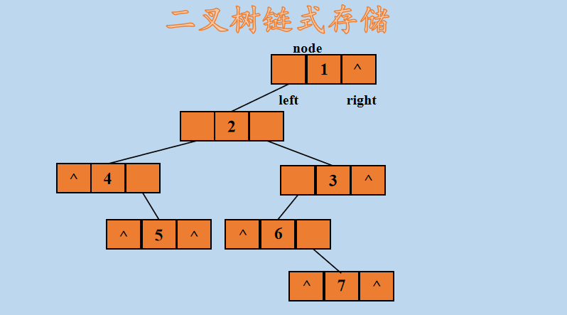 那么,使用二叉链表左右孩子法存储后,如下所示: